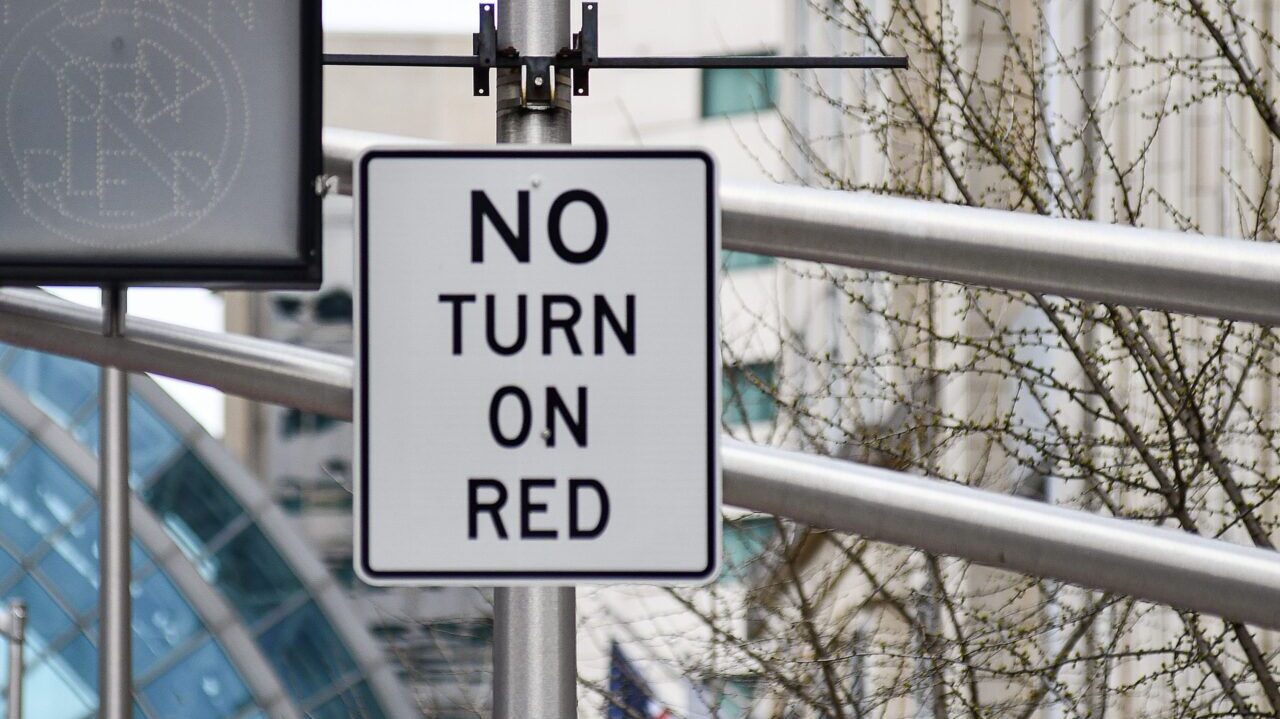 - ❌ C’est interdit si un panneau indique “No turn on red” (pas de virage au feu rouge).
