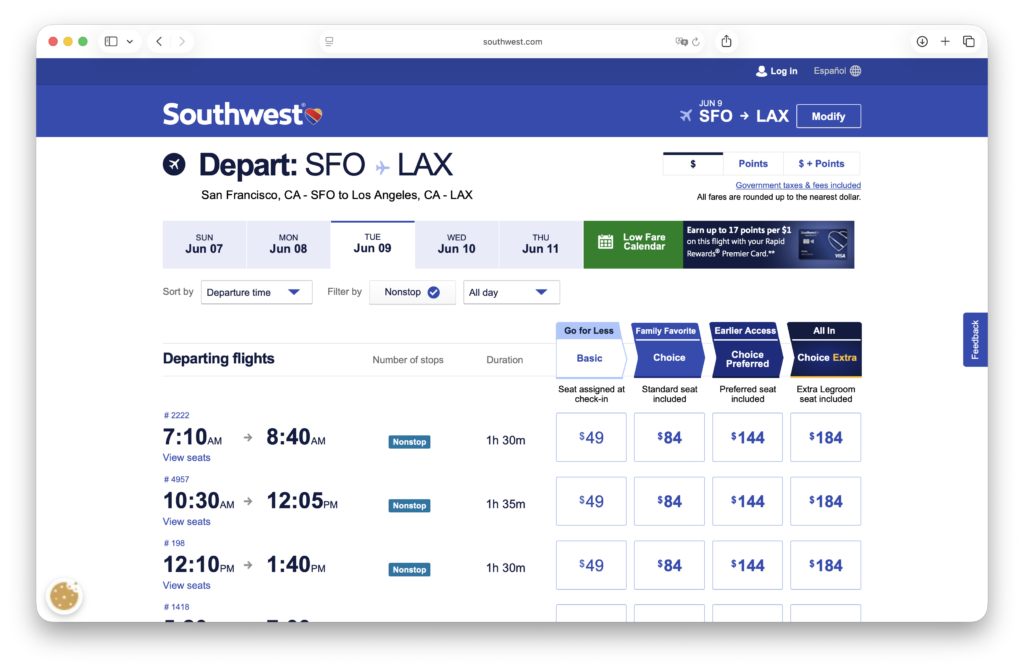 Southwest propose souvent de bons prix, surtout si tu réserves à l’avance.
